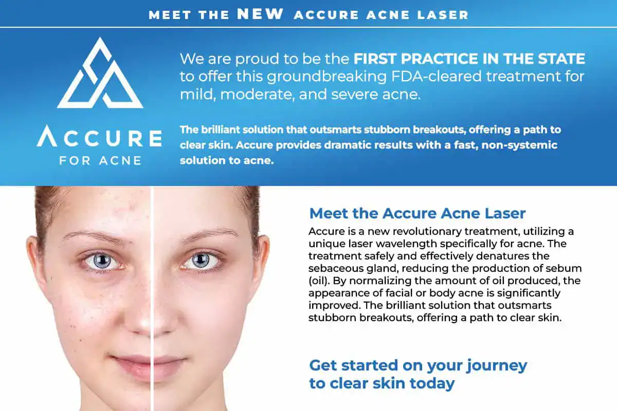 - We are proud to be the first practice in the state to offer Accure Acne Laser, the groundbreaking, FDA-cleared treatment for mild, moderate and severe acne.