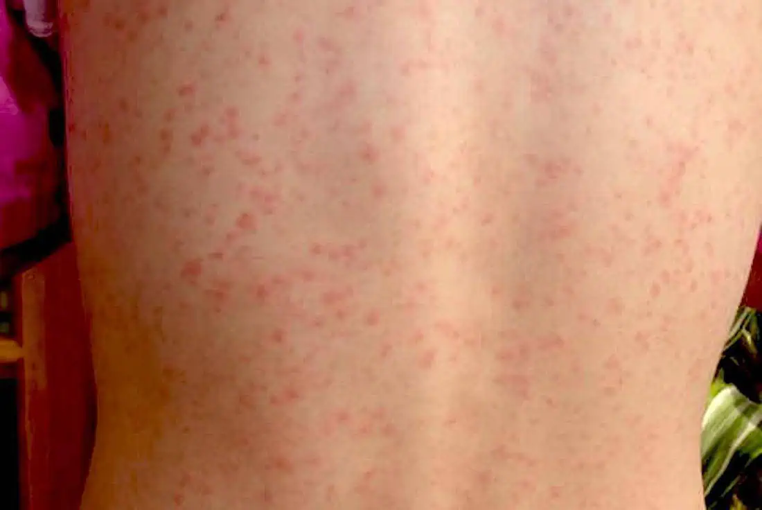 5. Red blotchy pinpoint rash that feels like sandpaper